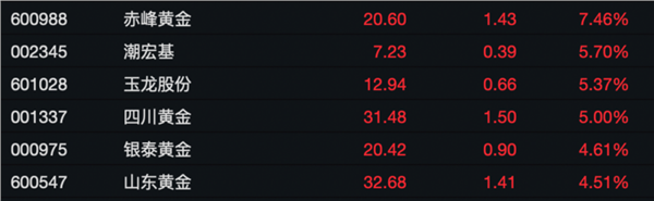 金价的继续大涨也推动黄金概念股股价上行,赤峰黄金、山东黄金、中国黄金、四川黄金等股票盘中均大幅上涨。