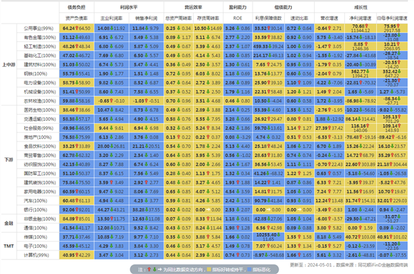 行业财务指标同比变动