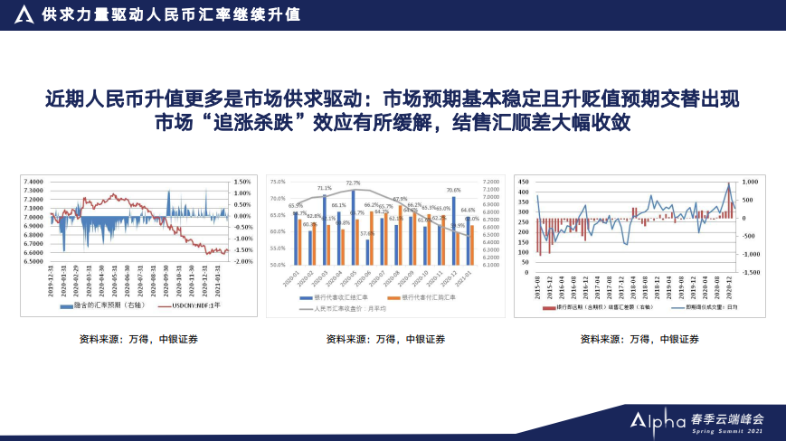 “通过数据对今年以来的这一波人民币升值进行基本的判断,这一波的人民币升值主要是供求驱动,而不是预期驱动。”