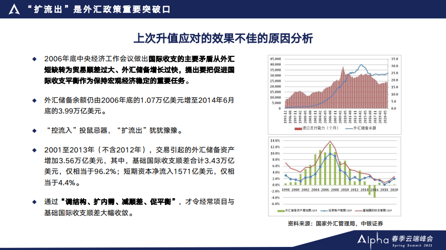 第二,从政策上来讲,应对当前的升值压力,有可能扩流出是一个重要的改革方向。那么对于我们来讲,不论是个人还是机构走出去,可能政策上会相对的比较宽松,和前些年相比也会有一些变化。