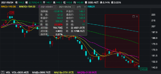 两家公司在港股却表现低迷,9月以来,腾讯累计下跌4.36%,截止9月24日收盘,腾讯报收460.2港元/股,相较于年内高点已下跌39.08%。阿里巴巴则是“更惨”,9月累计跌幅达到12.81%,截止9月24日收盘,阿里巴巴报收143.8港元/股,创历史新低,相较于年内高点已下跌40.91%。
