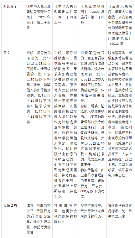 ¡¡¡¡Ò»¡¢×éÖ¯¡¢Áìµ¼´«Ïú»î¶¯Ïà¹Ø·¨ÂÉ·¨¹æºËÐIJîÒì¶Ô±È±í