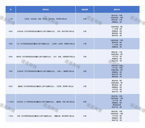 其中,未来生物表现尤为突出,多次以月均5款以上的发布量成为月度新品王,9-10月更以17款新品登顶,堪称年度最大“黑马”。