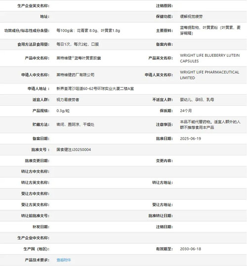 莱特维健?蓝莓叶黄素胶囊 国食健注J20250004