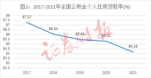 公积金贷款是和购房行为相对密切的指标。截至2021年末,公积金缴存余额8.19万亿元,贷款余额6.9万亿元,个人住房贷款率(年末贷款余额与缴存余额的比率,下称“贷款率”)为84.18%。