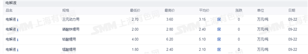 证券之星新能源车行业周报:据上海有色网,截止9月22日,电池级碳酸锂16.5-17.9万元/吨,环比上一工作日下跌1500元/吨;工业级碳酸锂15.5-16.4万元/吨,环比上一工作日下滑1500元/吨。近期随着碳酸锂价格的持续下探,部分锂盐企业制造成本已被击穿,逐步调低开工,产量走低,部分厂家挺价心态渐强,跌幅有所收窄。