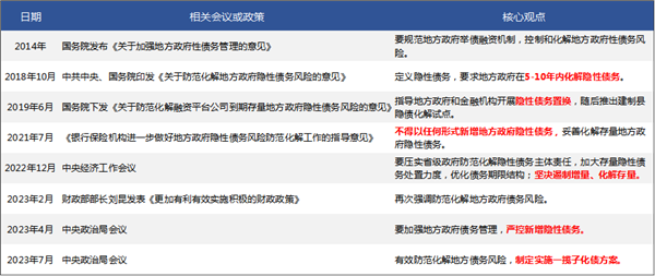 表2近年来有关化解地方债风险相关会议的政策及观点