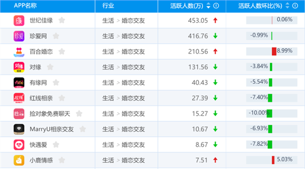 在线婚恋双寡头格局依旧,世纪佳缘、珍爱网月活跃用户均超400万